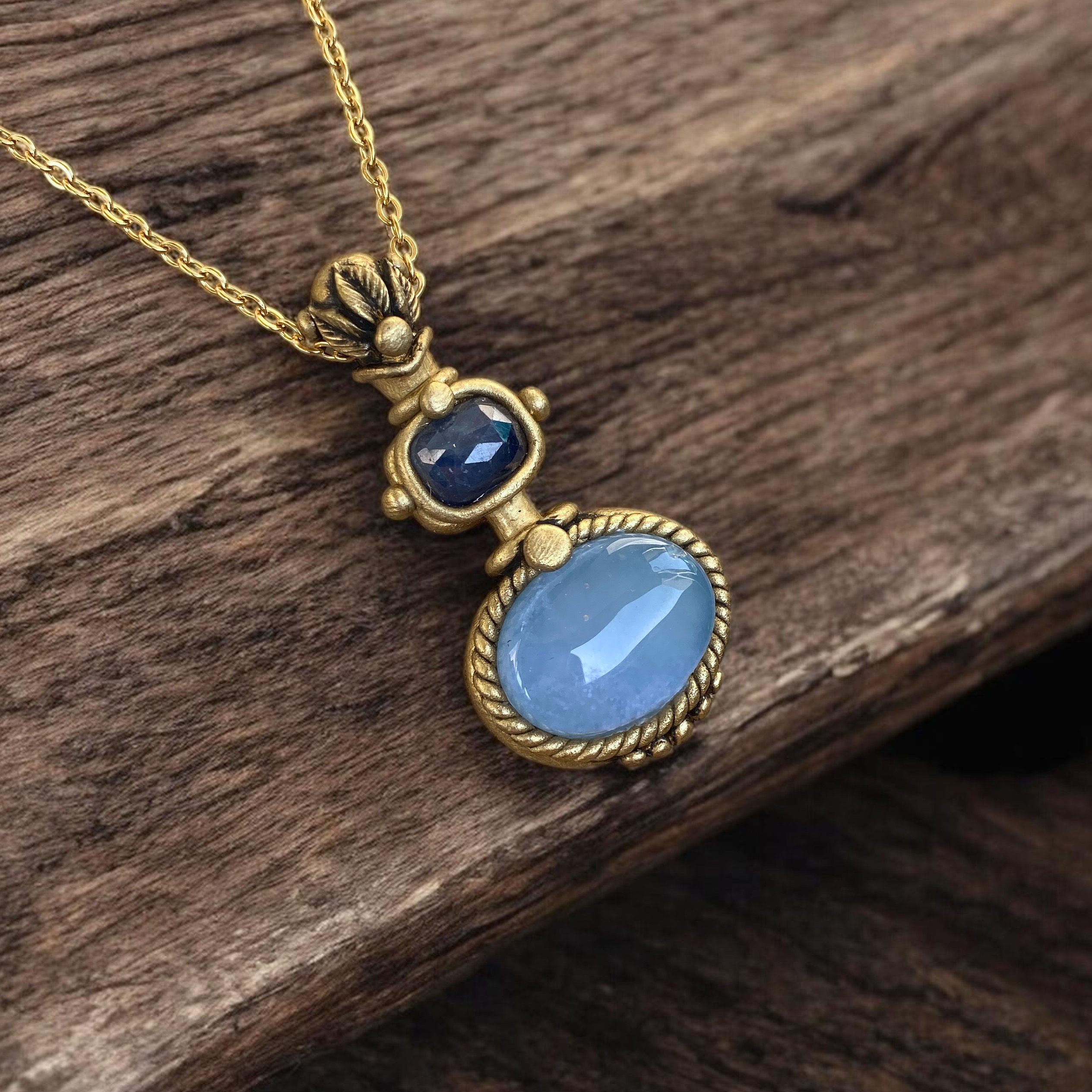 Colier lucrat manual din lut polimeric cu cristale naturale.