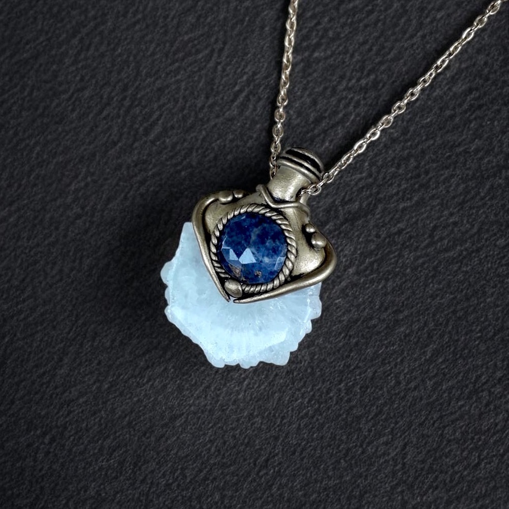 Colier lucrat manual din lut polimeric cu cristale naturale.
